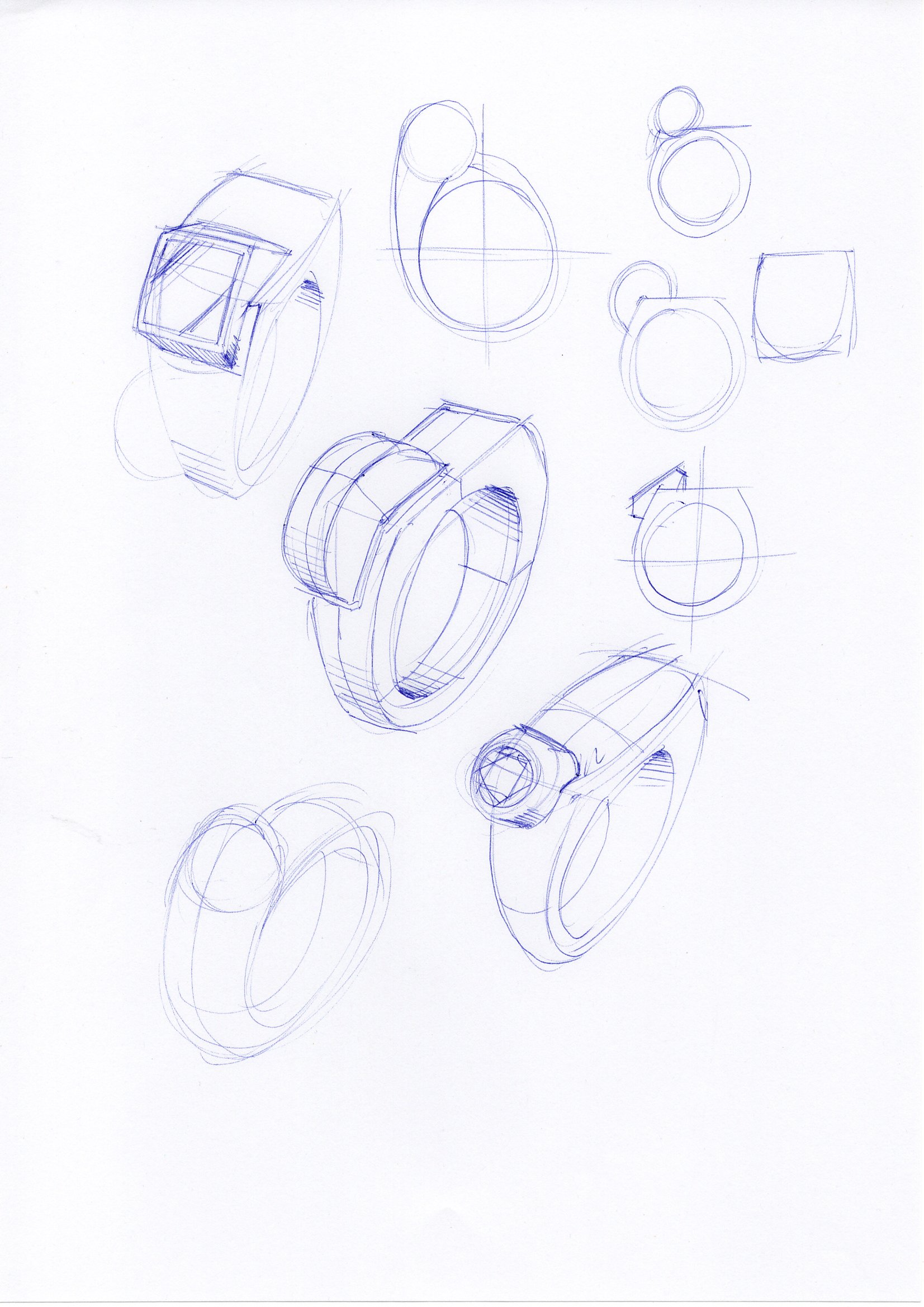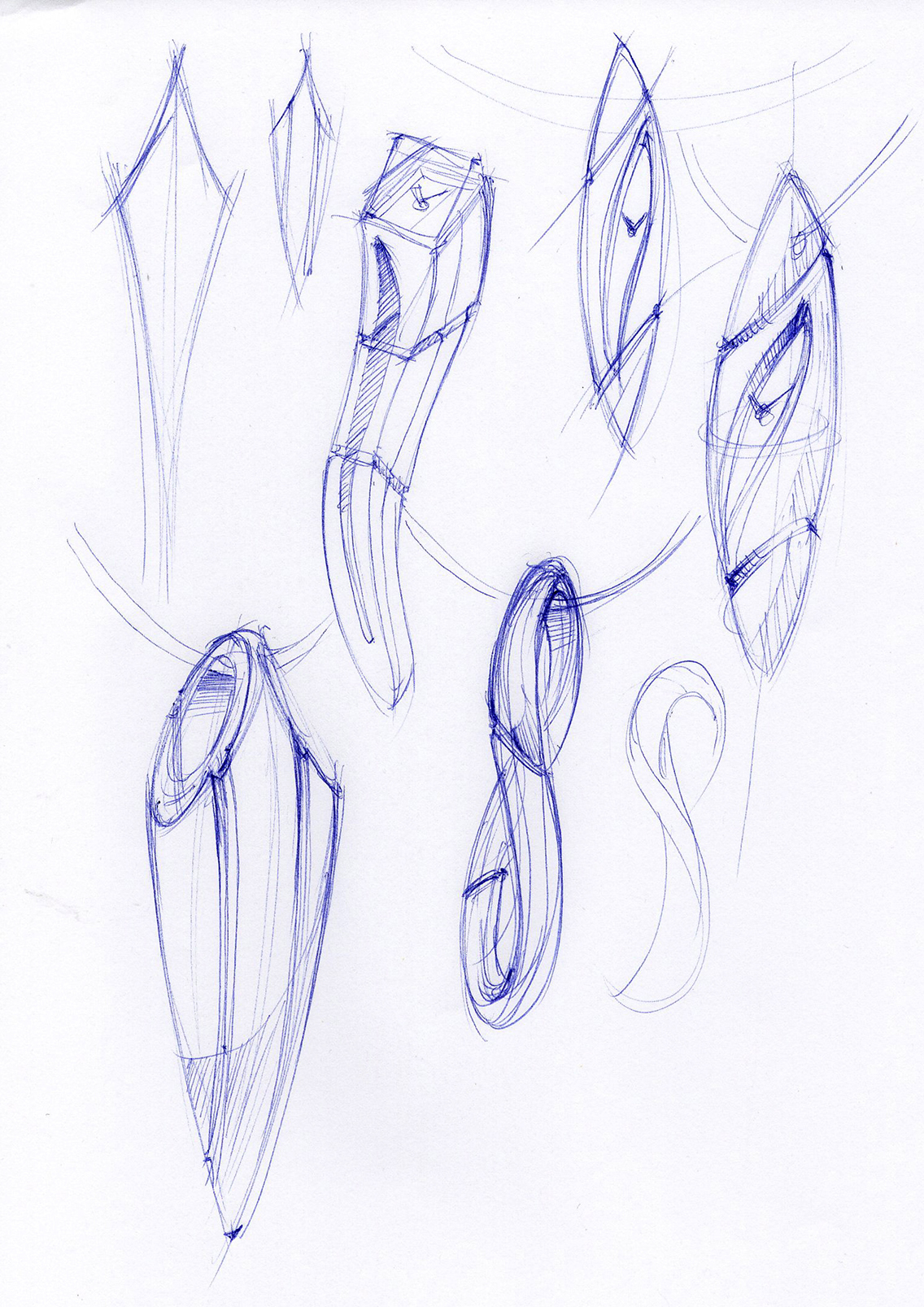 • Deliverable: Four sketches: three silhouette variations + one sectional or exploded view revealing the off-center cavity and its effect on mass distribution.