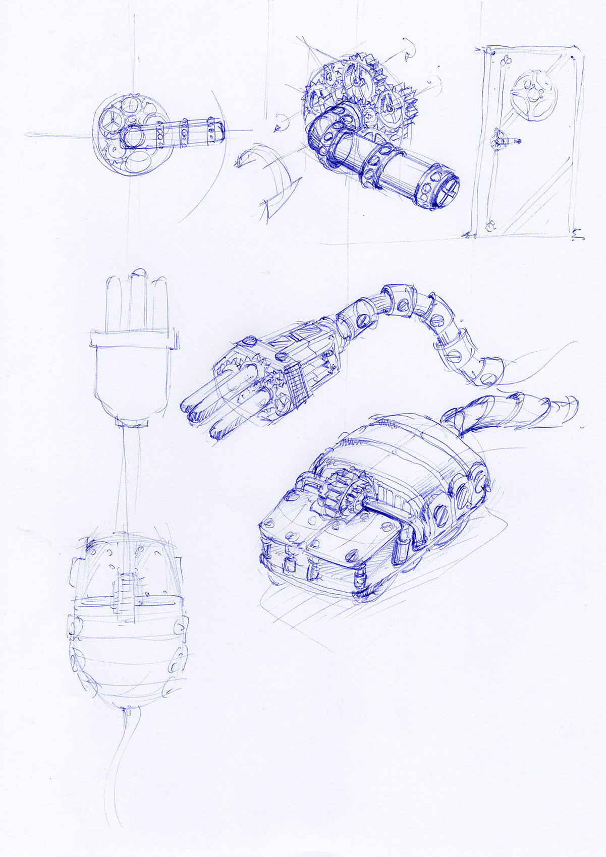 • Object: Rework a banal household object (power outlet, light switch, padlock, door handle) into a steampunk module — exposed mechanics, riveted geometries, copper-like volumes.
