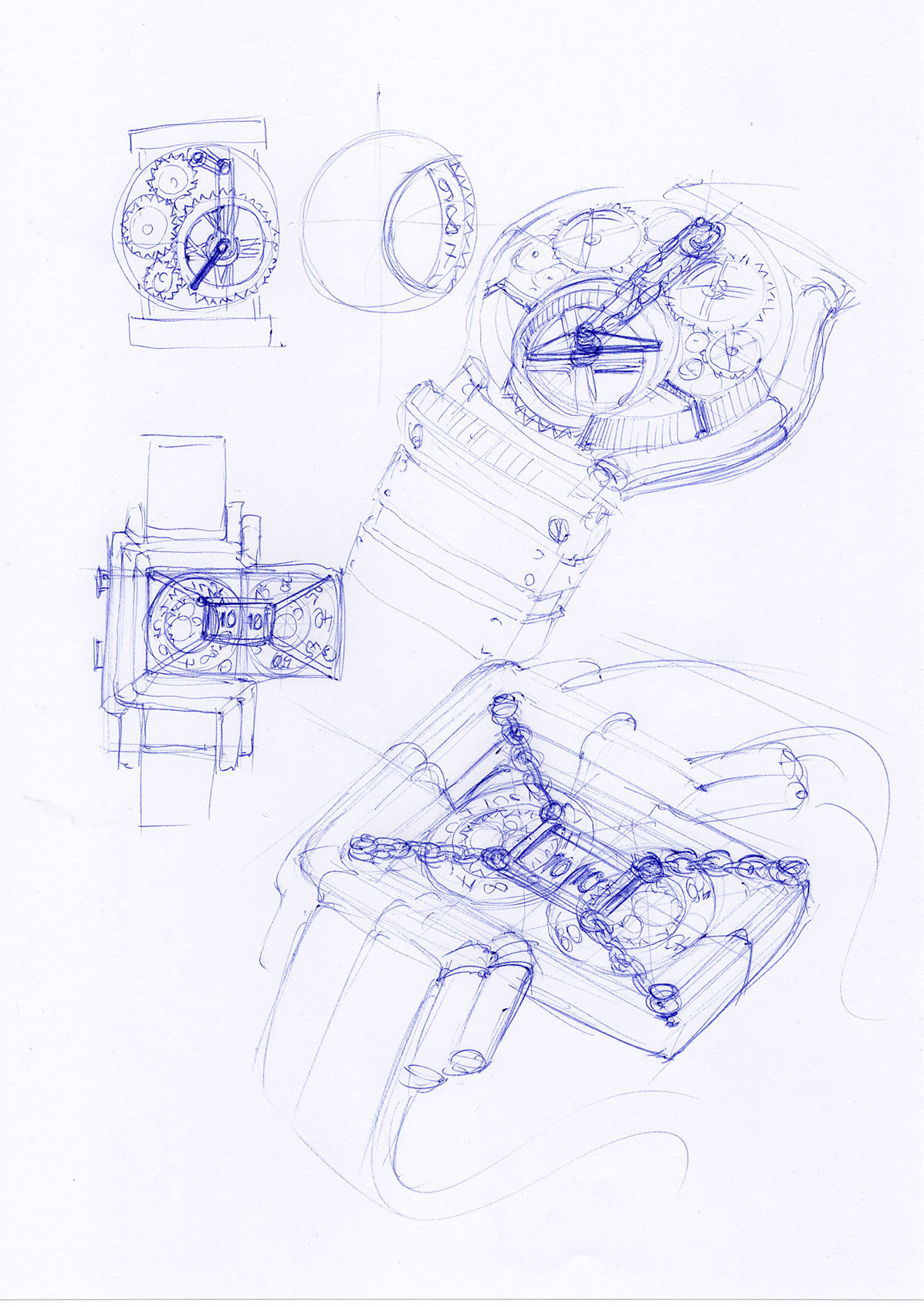 • Object: A wrist-worn steampunk “drift module”: a compact mechanical core containing an eccentric internal cavity that dictates the external silhouette. The cavity drives the logic of pipes, gauges, ducts, or coil housings emerging around it.