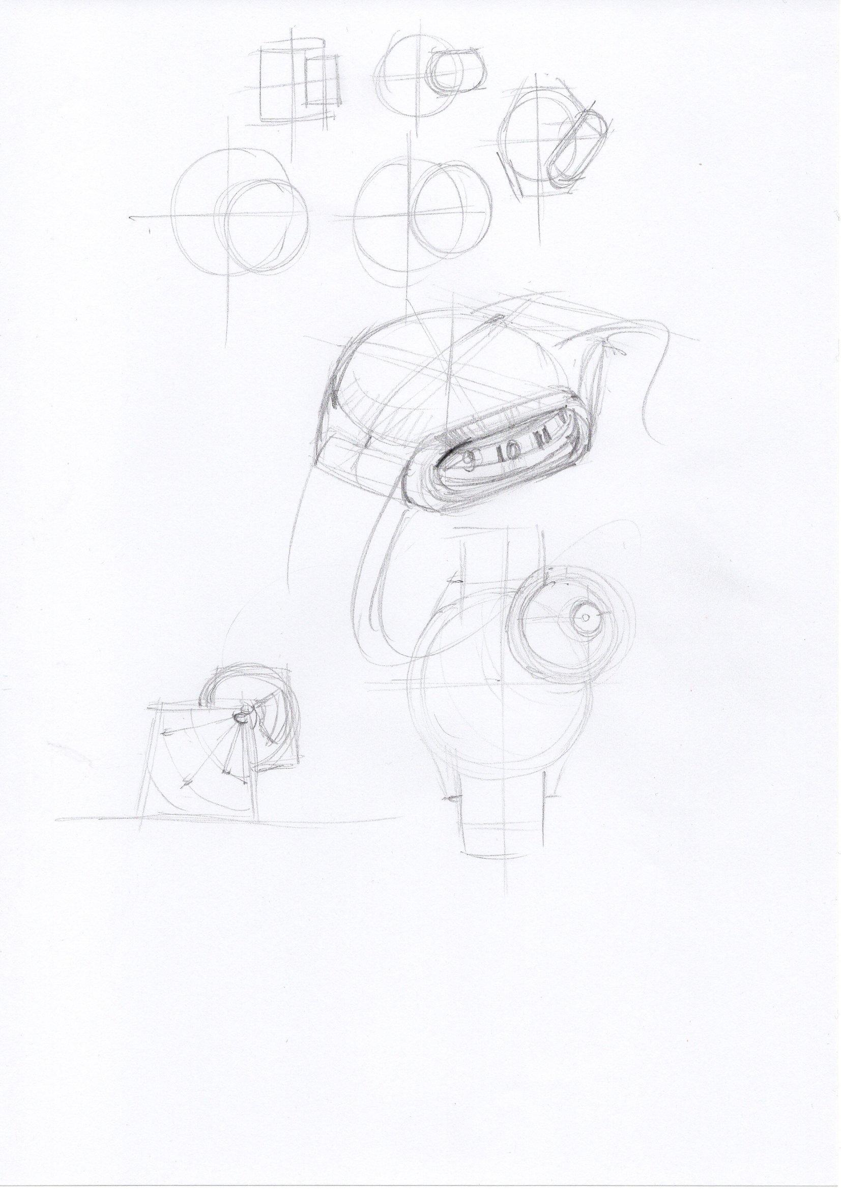 • Deliverable: One sketch isolating the volumetric principle: draw the external envelope first, then cut away a section to expose the off-axis cavity, then derive two external features whose geometry is strictly imposed by that cavity.